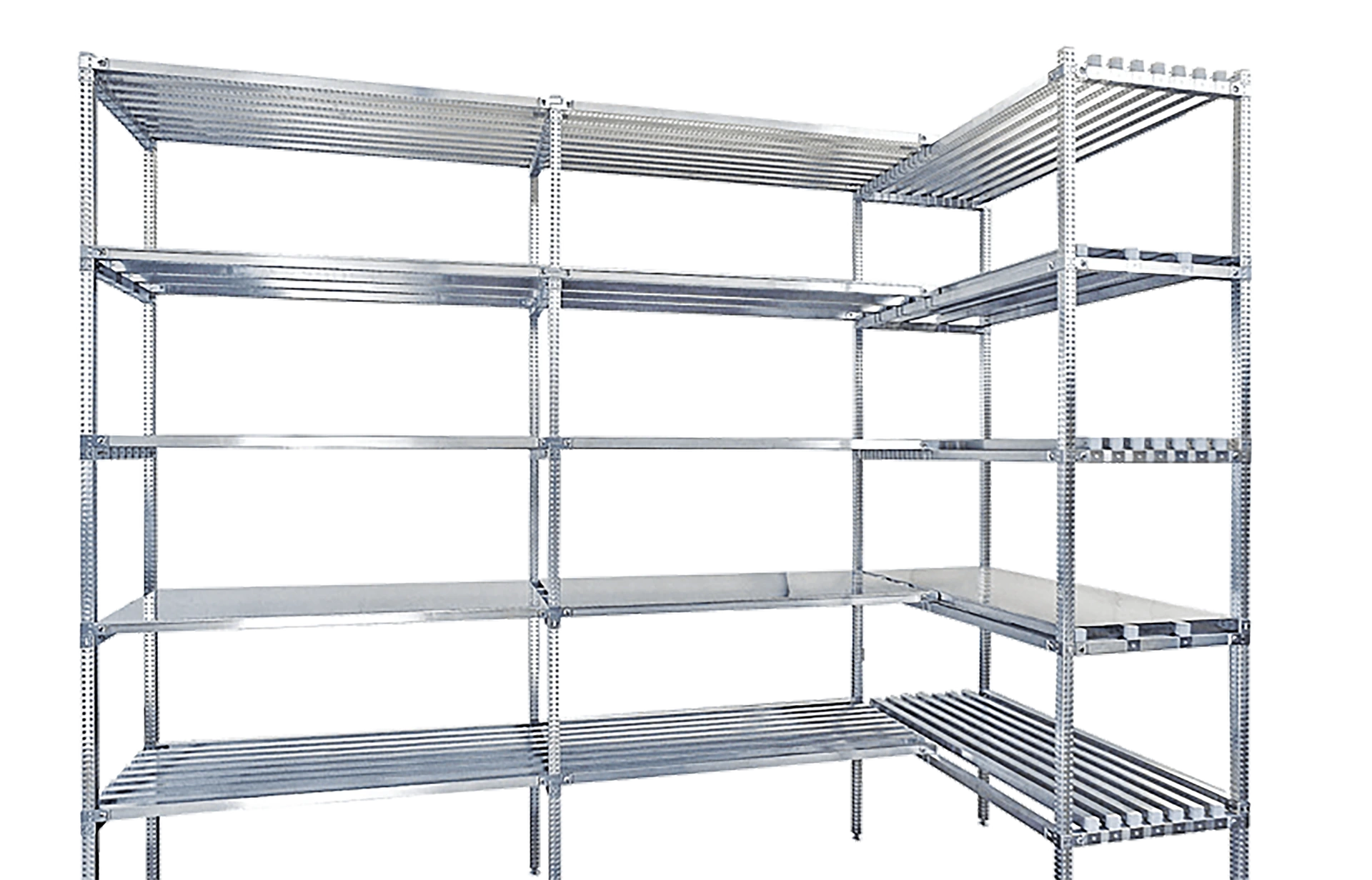 aste per appesi, piedini inox regolabili, tappi in plastica, moduli integrabili